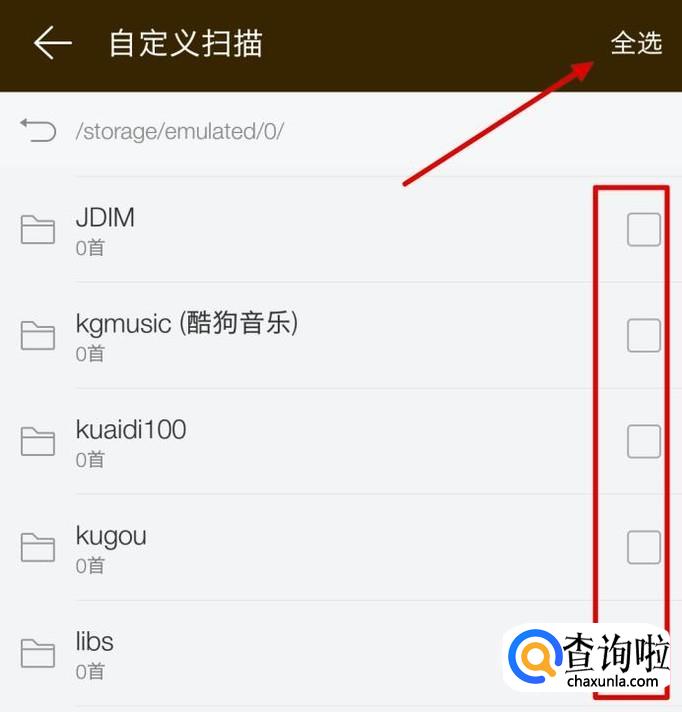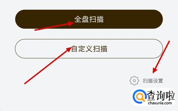 为何小编没说“自定义扫描”呢?是因为我们需要自己勾选文件夹,虽然上面也有个全选,如果勾选上全选,还不就意味着是全盘扫描么,哈哈哈