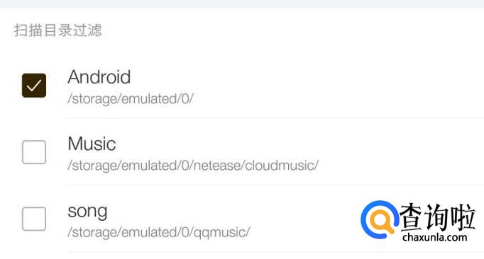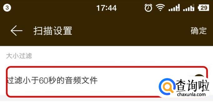进入扫描设置后,我们会看到上方是一个音乐文件大小筛选,小于60S将不被扫所出来。这个我们根据自己的需求来开启或关闭。