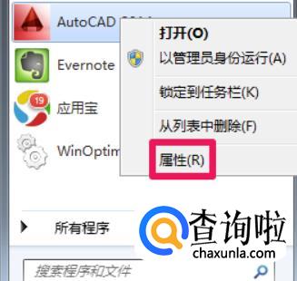 或者在开始菜单栏找到软件点击鼠标右键选择属性。