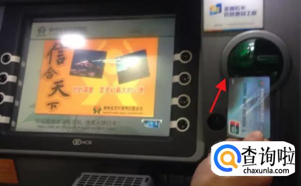 要将银行卡的磁条向下、有磁条的一边向右,按照卡片上的箭头指示方向插入ATM机,等待读取银联卡信息。
