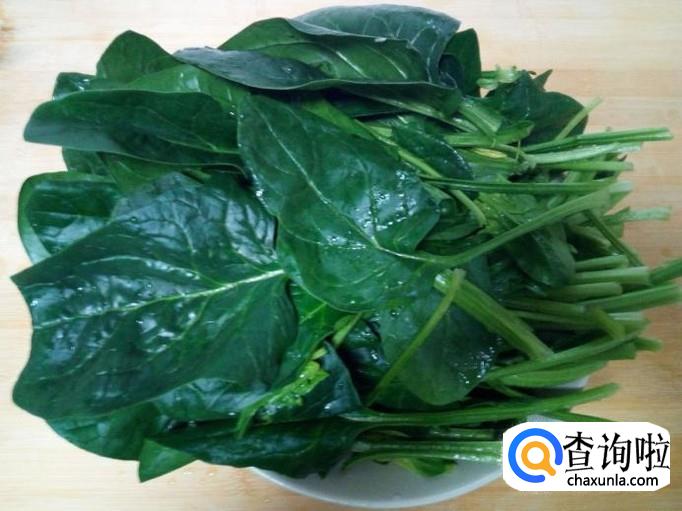 菠菜去根,用水清洗干净,控干水分。