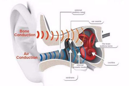 人们听到的声音主要是来源于两个渠道,第一个是空气传导,例如你听到外界嘈杂的声音,这些声音都会通过你的外耳道振动鼓膜,通过鼓膜再传导到听觉感受器中,最后在听觉神经上将声波信号转换成电信号,传导到大脑皮层,你听到的声音就这样形成了。