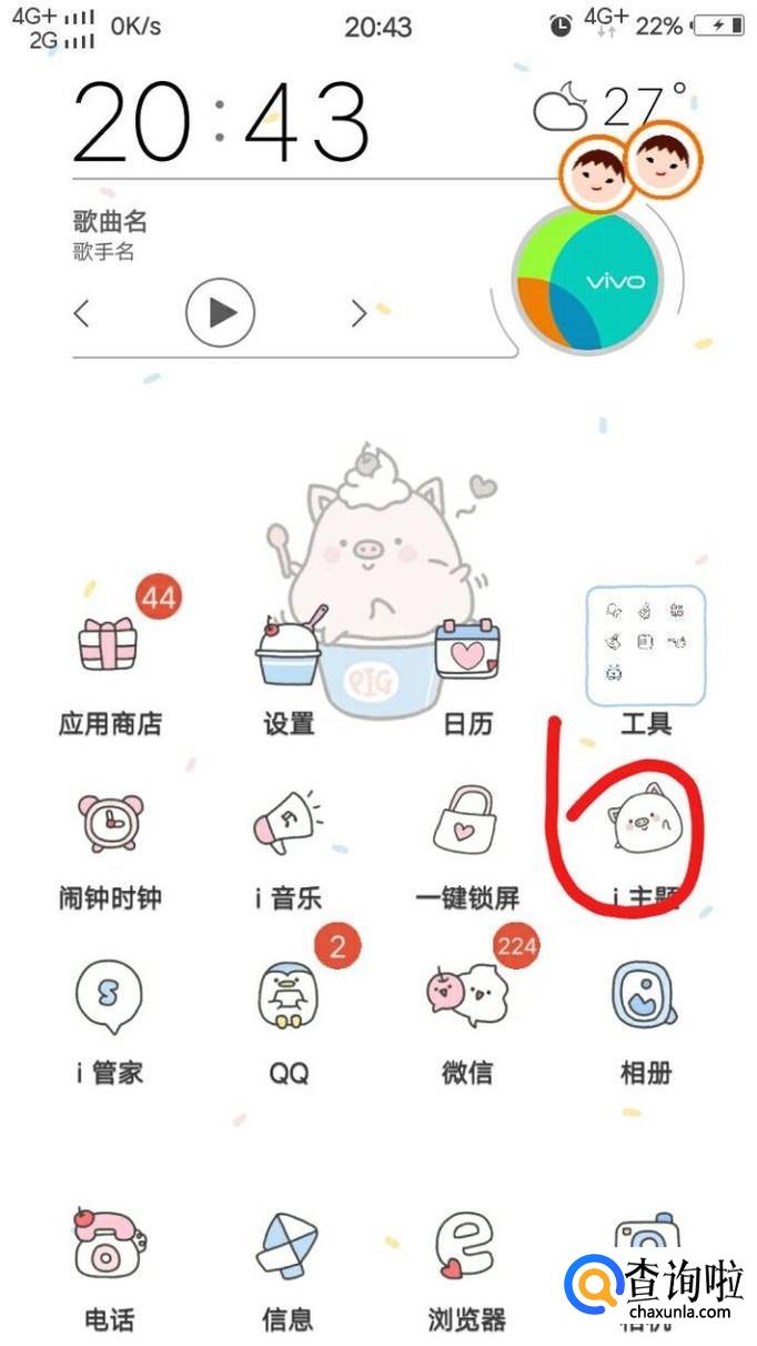 首先,我们选择点击打开vivo手机自带的“ i主题”。