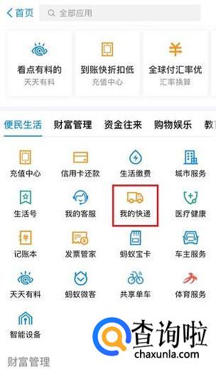 在“便民生活”一栏中,找到并点击“我的快递”选项。