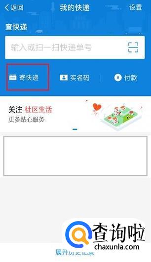 在我的快递界面中,在输入快递单号的下方,点击“寄快递”选项。