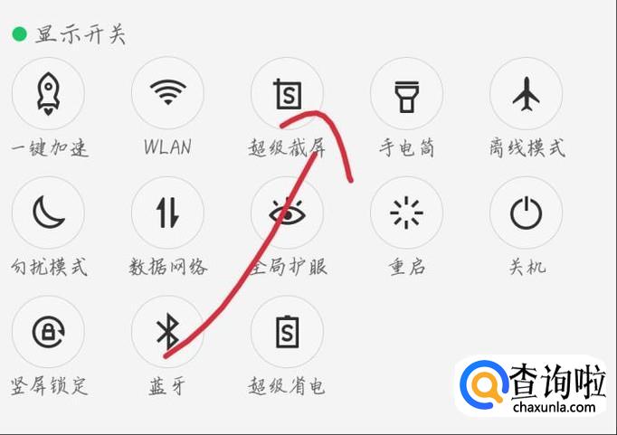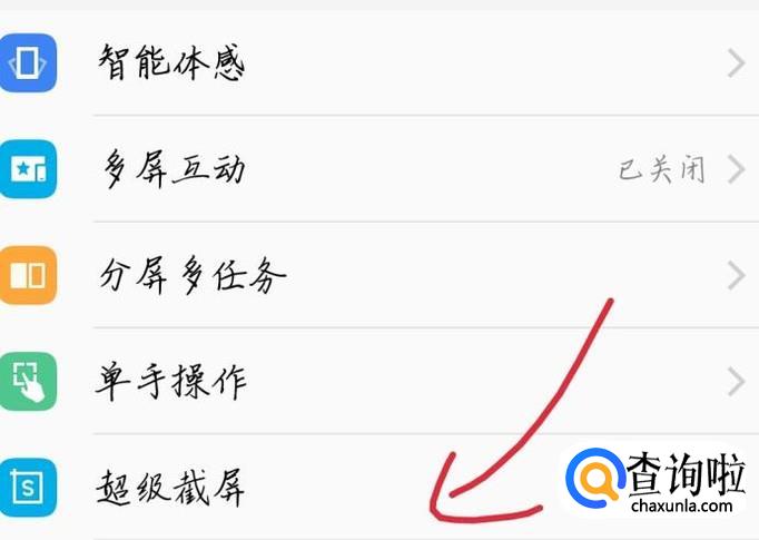 向下滑动手机,点击“超级截屏”选项,如图1箭头所示。你会看到出现一个新的界面,如图2所示。