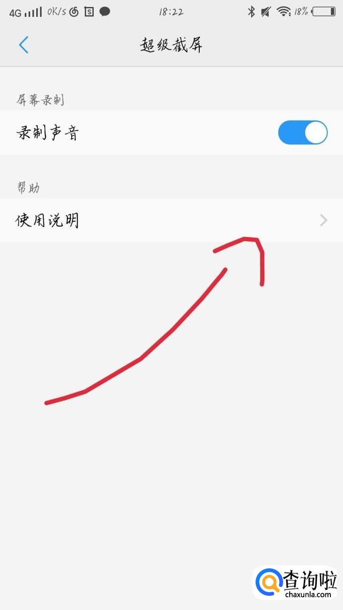 点击“使用说明”选项,如图1箭头所示。你会看到出现一个新的界面,点击“屏幕录制”选项,如图2箭头所示。