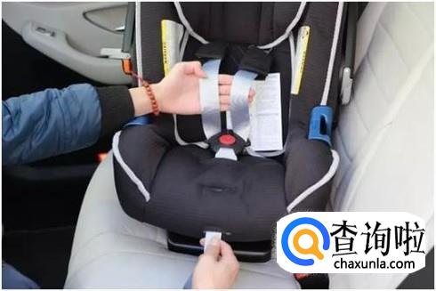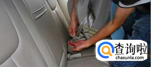 然后将儿童座椅先放在汽车座位上,然后将安全带拉长,把安全带穿入坐垫上,将坐垫底部固定。