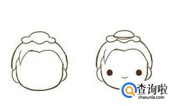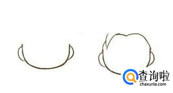 首先,画出牛郎的脸型,这个画的Q版一点,可以把脸画圆一点。