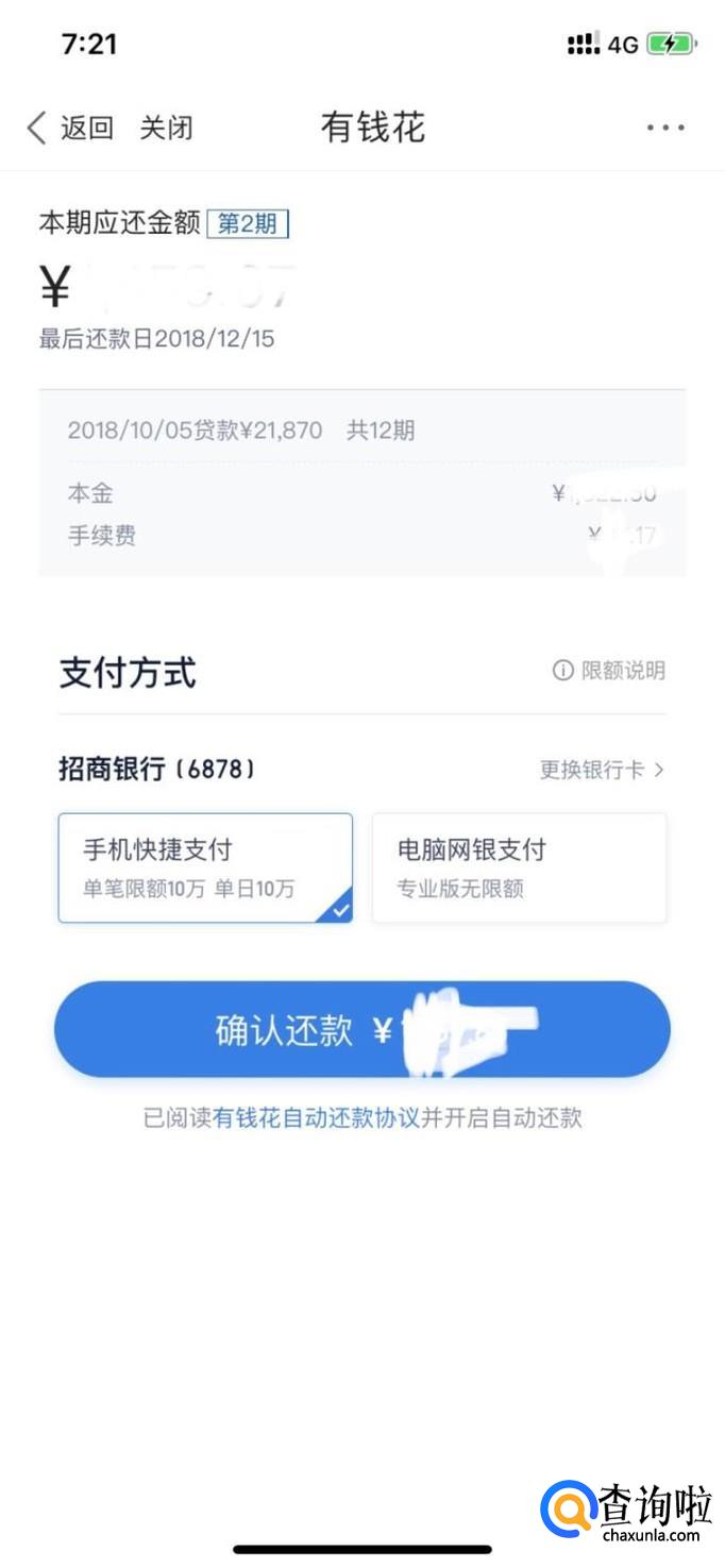 确认好还款金额、支付方式之后,点击确认还款,完成还款。