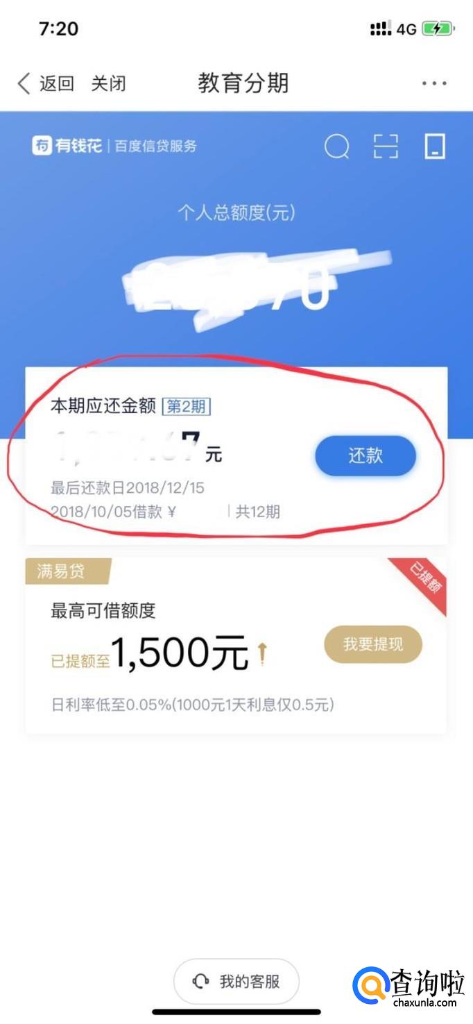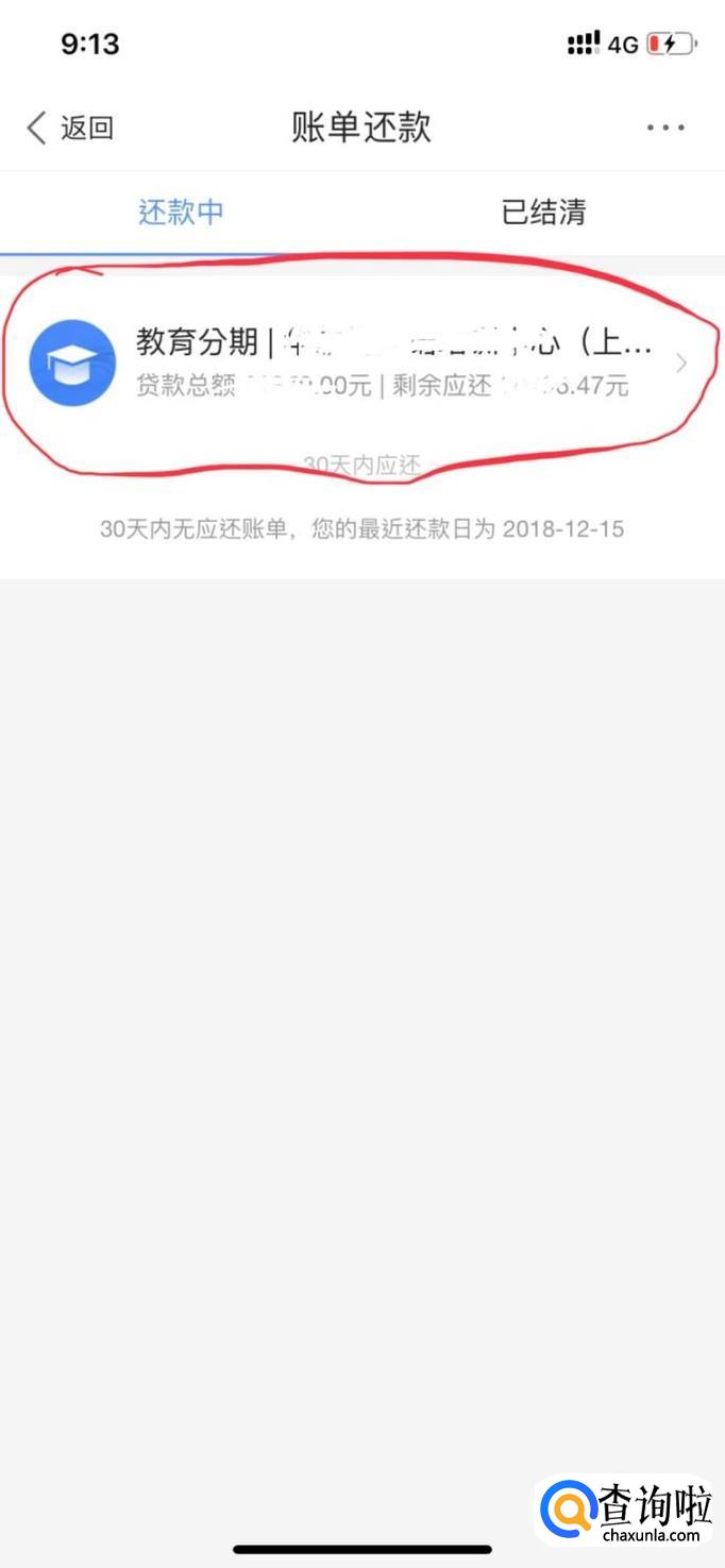 在教育分期页面,会有个人贷款总额度、本期应还金额,然后点击还款。