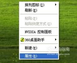 如果我们只是想把桌面的字体放大,可以右键单击桌面空白处,在弹出的菜单里选择“属性”。
