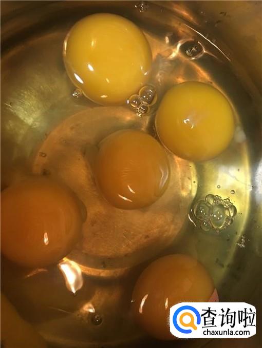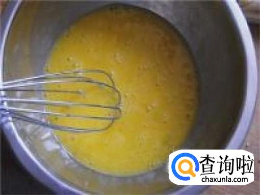 首先,我们先准备5个鸡蛋,然后达到不锈钢盆中,用打蛋器打散,并加入适量的食盐调味。