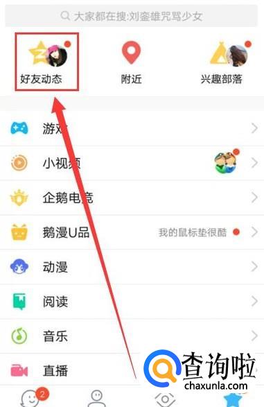 进入之后,在“动态”页面,找到“好友动态”,点击并进入。