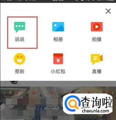 进入动态页面,点击右上角的“+”,点击“说说”,进入下一界面。