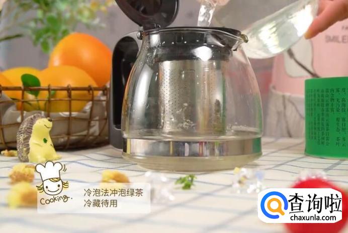 冷泡法冲泡绿茶,放入冰箱冷藏待用。