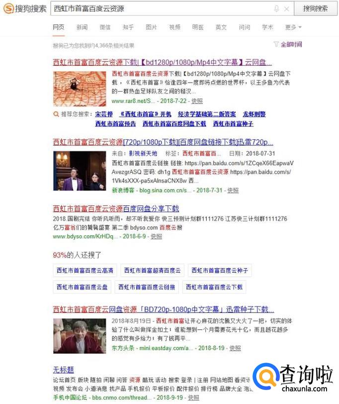 搜索百度云的资源比较直接也比较简单的方法就是搜索资源名称加百度云,例如搜索一部影片,进行名字加百度云搜索,网页中便显示了该资源的分享