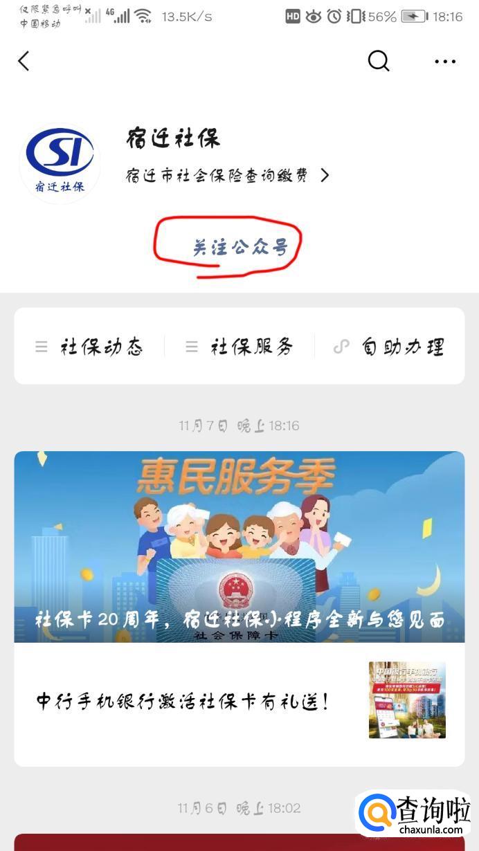 关注其公众号,点击自助办理。首先要有自己的一张个人电子社保卡。