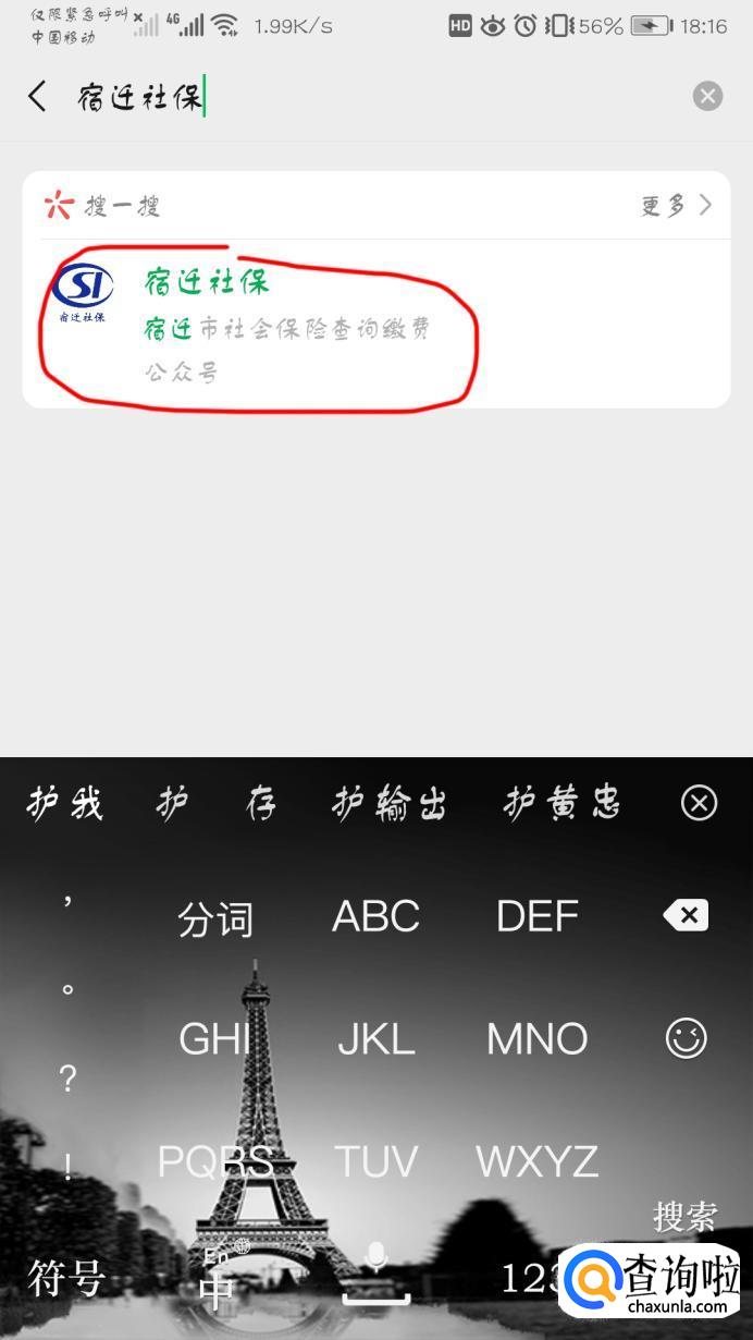 搜索栏输入“宿迁社保”,点击进入。