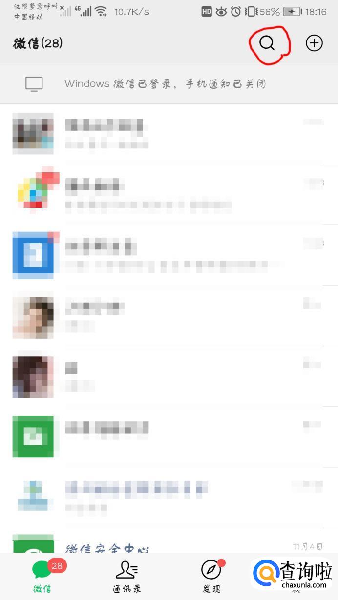 用手机打开微信app,点击搜索。