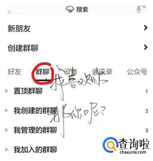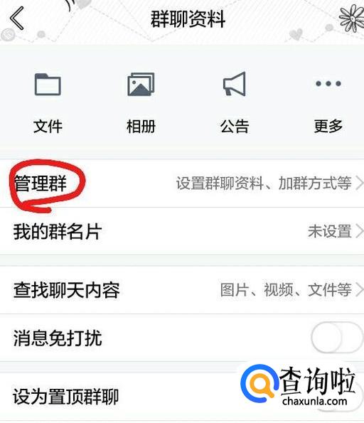 首先,我看可以找到群聊,然后点进去,找到自己想找的群。然后点击右上角,会出现一个新的页面。