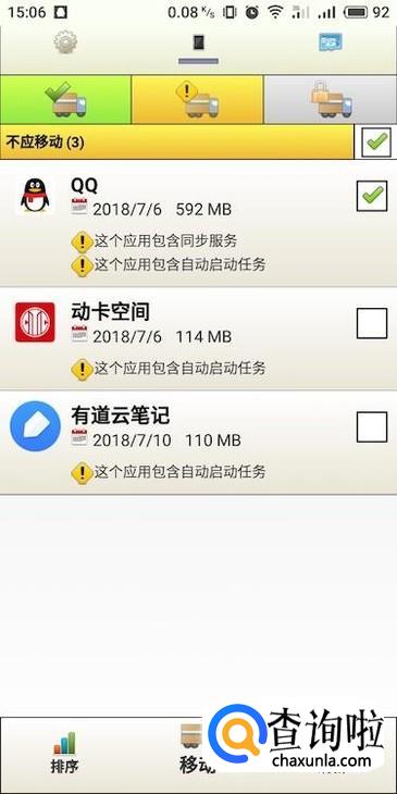 加载完成之后,点选想要移动到SD卡的应用,然后在下方选择“移动”即可。