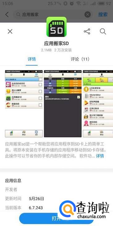进入Y55L自带的应用商店,在商店中搜索“应用搬家SD”应用,然后完成下载安装。