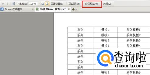 然后,在打印预览页面中,我们选择分页预览按钮。