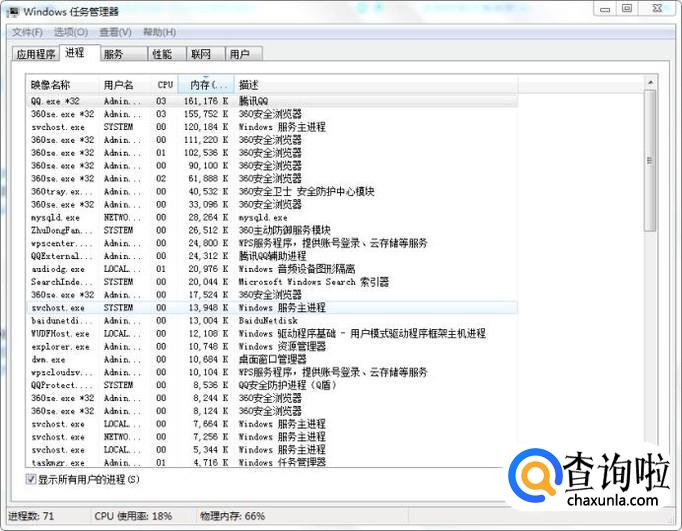 使用快捷及【Ctrl+Alt+Del】打开任务管理,然后把电脑中一些暂时不需要使用的进程关闭掉,如下图所示: