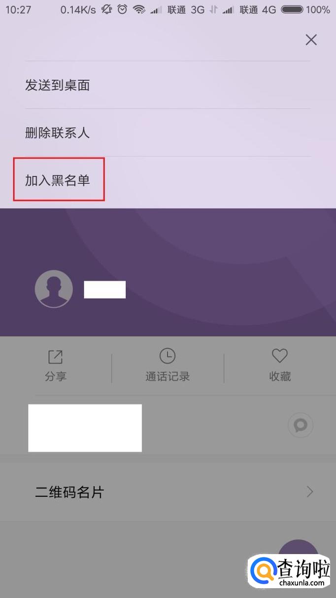 在接下来弹出的页面中,选择“加入黑名单”选项。