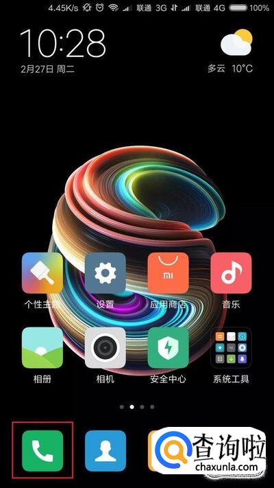 这里我以MIUI系统为例,打开MIUI系统桌面上的“电话”应用图标。