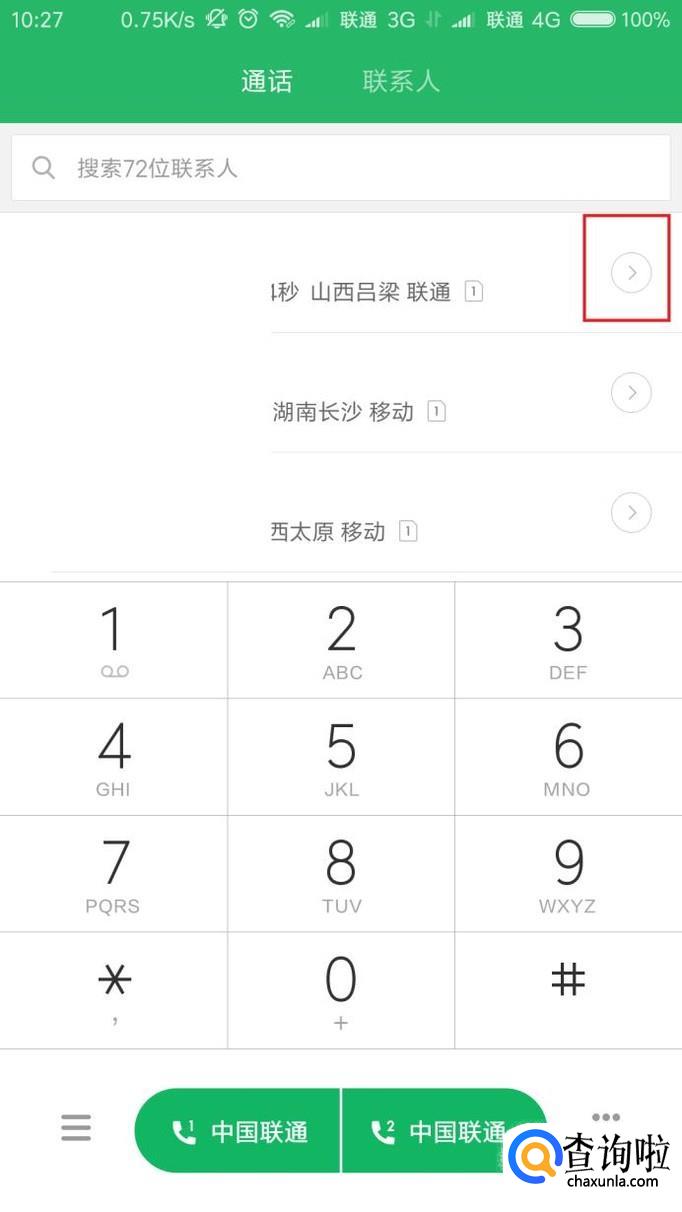 打开电话应用界面之后,我们可以看到近期的手机通话记录,点击要加入黑名单的电话号码。