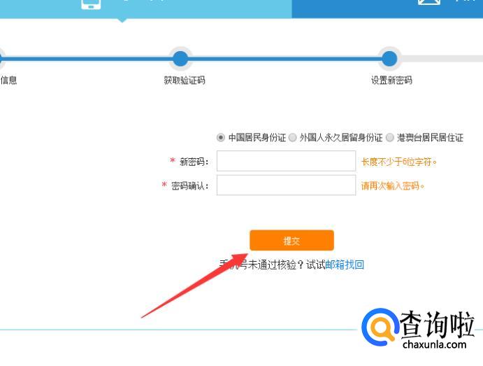进入之后,输入新密码并确认新密码,点击“提交”,如图所示。