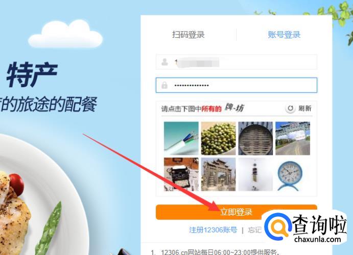 返回账号登录页面,输入账号密码,点击验证图片,点击“立即登录”。
