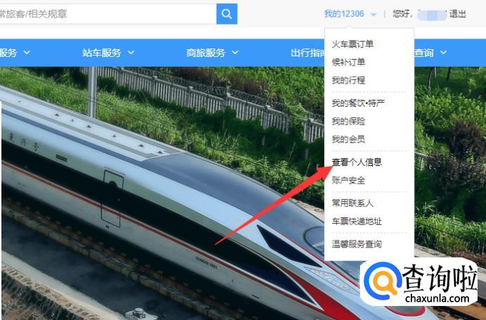 进入之后,在“我的12306”位置下选择“查看个人信息”,如图所示。