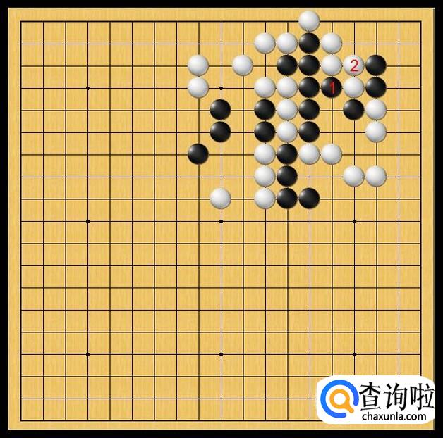一旦让黑棋打吃白一子,黑棋中盘黑子将和黑棋右上角黑子相通,黑棋中盘将存活。于是,白棋老老实实的在白2处粘上。如图所示。