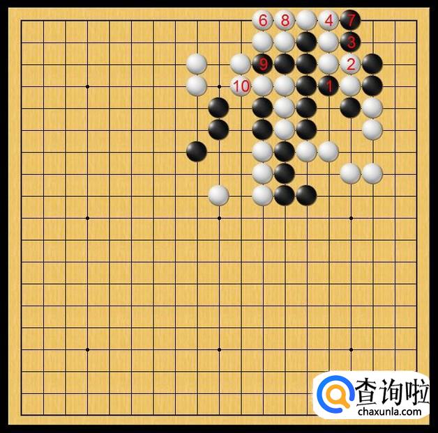 白棋没得选择,直接在白8处粘上,白8的粘上使得白棋能够成功的连接到中边。如图所示。