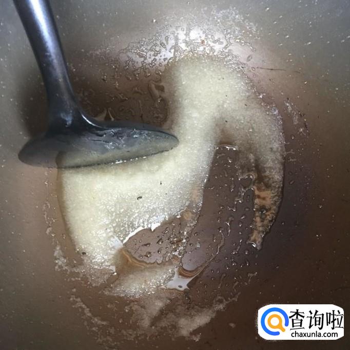 然后将底油加热至冒烟,倒入适量白砂糖,熬成金黄色。