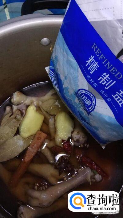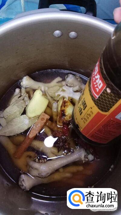 放入适量盐,料酒,少许老抽,将高压锅盖上,大火烧开,等到大气儿上来,压上十分钟左右就可以了。