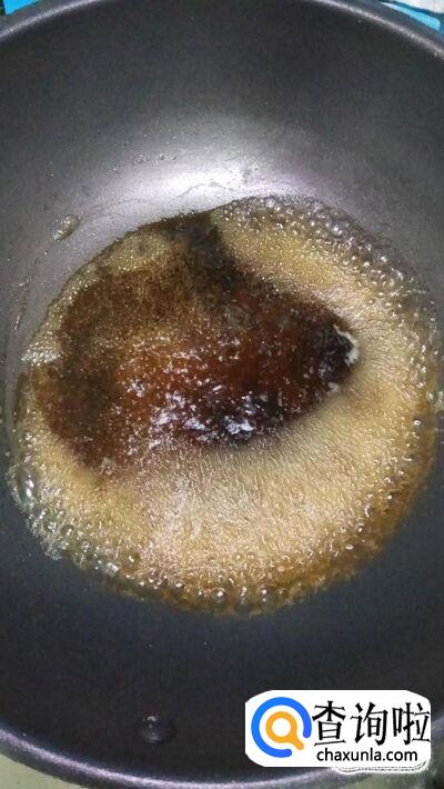 另起锅,加入适量水和白砂糖,熬出糖色后,马上加入清水。目的是让鸡爪的颜色更加好看一些。