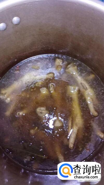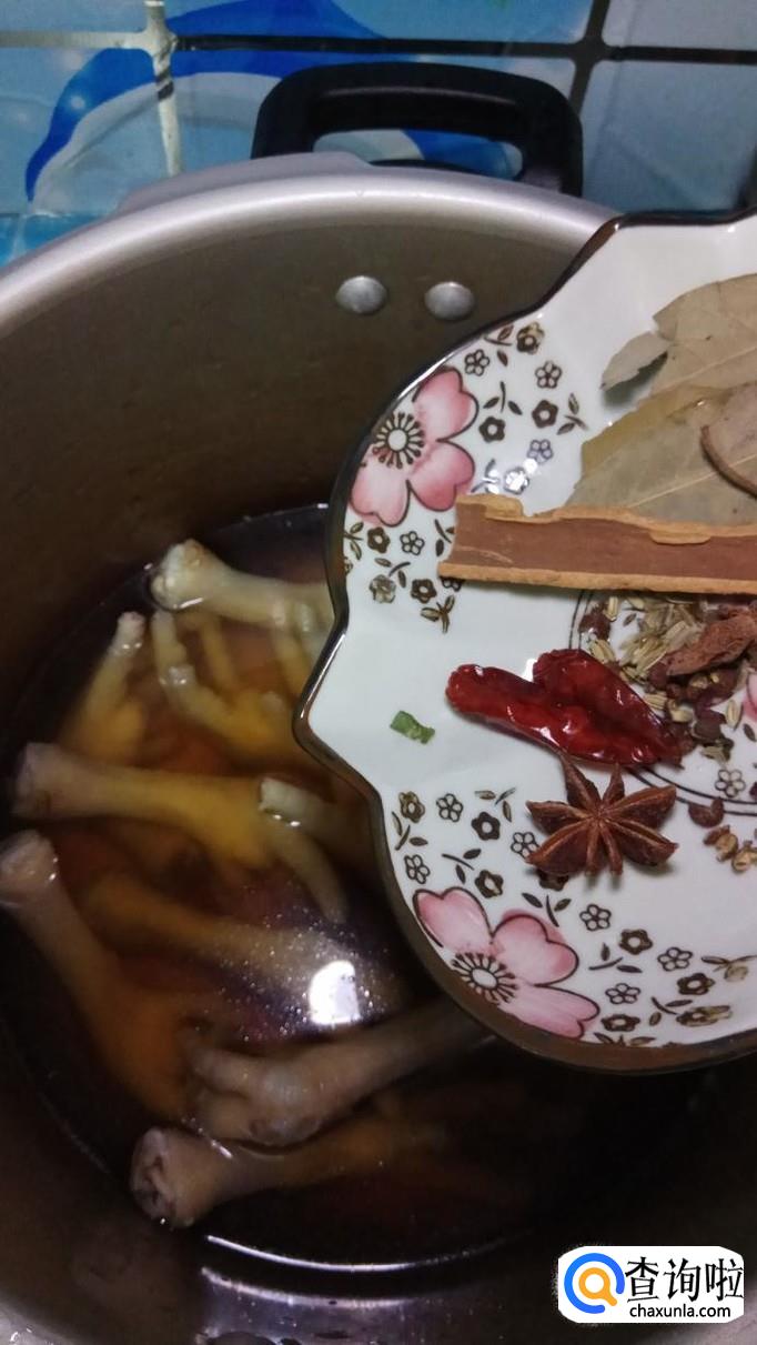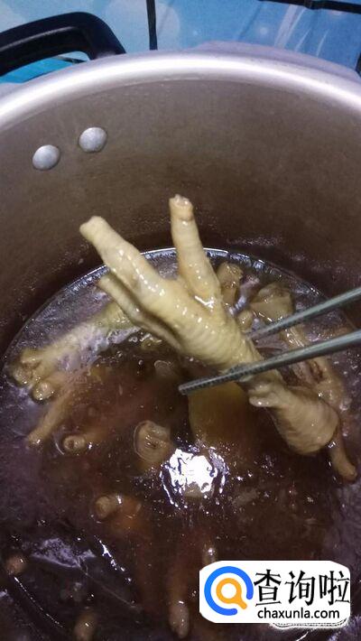 等到高压锅自然冷却,将锅盖打开,鸡爪就熟了。