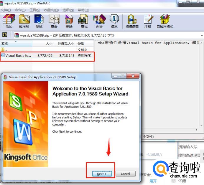 双击VBA应用程序,将会自动弹出VBA安装页面,点击【Next】。