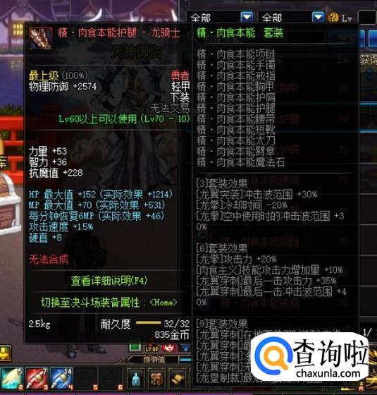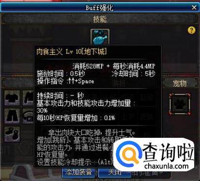 异界套装方面,我们可以选择异界二期套装中的“肉食本能”,6件套效果可以提升【肉食主义】10%的技能攻击力增加量。
