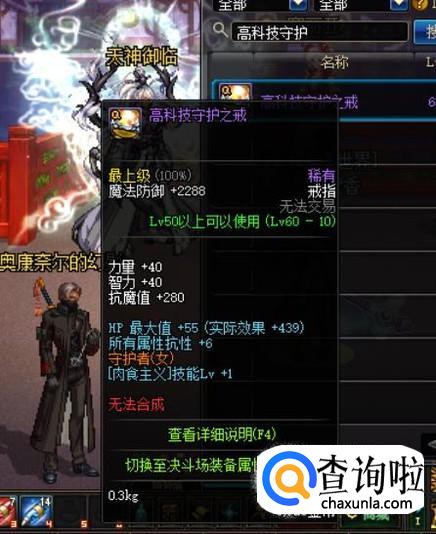 戒指方面,完成外传任务中的“梅尔文的高科技”,在任务奖励中选择“高科技守护之戒”即可,【肉食主义】技能LV+1。