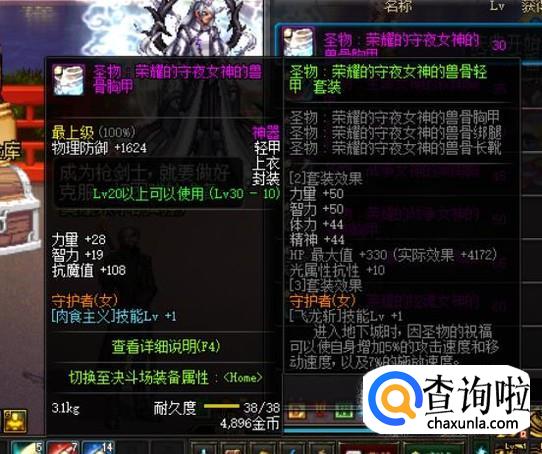 上衣部位可选择性就比较多了,30级、55级以及60级的圣物轻甲上衣的装备效果中,都可以增加1级的【肉食主义】技能等级。