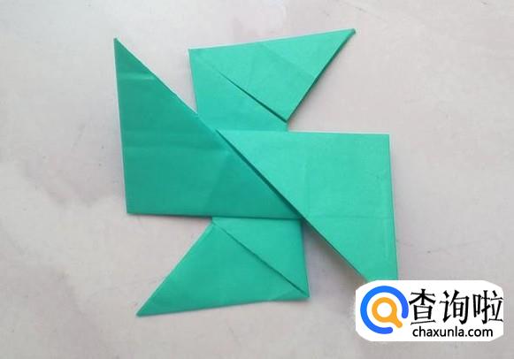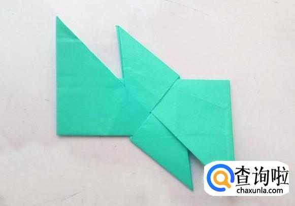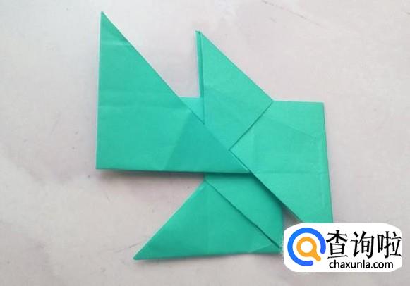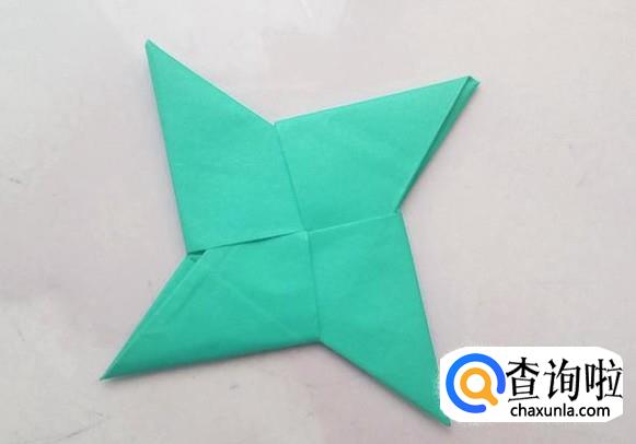 翻过折纸,把另外的2个尖角也插进缝隙,飞镖就折好了。