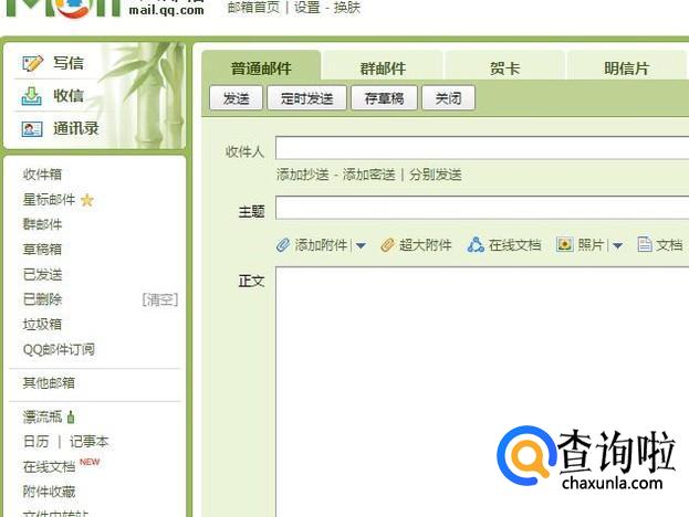 进入邮箱后,看到有“写信”、“通讯录”,如果收件人是自己的AA好友,直接点击“通讯录”就可以了,如果要填写收件人的信息,就点击“写信”选项