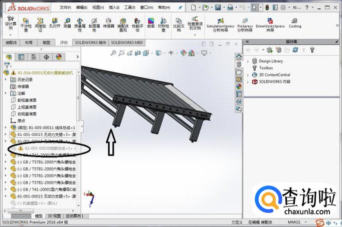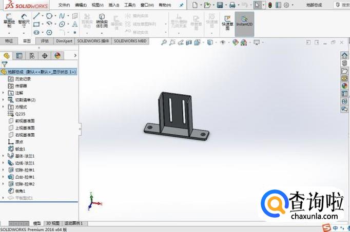 首先打开已经装配完整的装配体,以地脚总成为例,在没有更改零件名称前装配体完整无缺失;