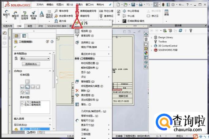用鼠标点击缺失的视图,右击并点击打开零件的操作命令,如下图所示;