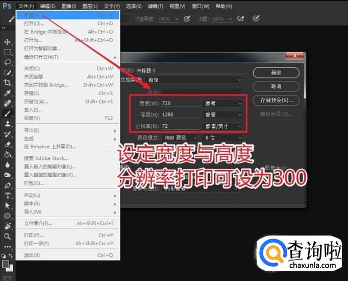 注:尺寸设为:720*1280(分辨率:300像素/英寸)